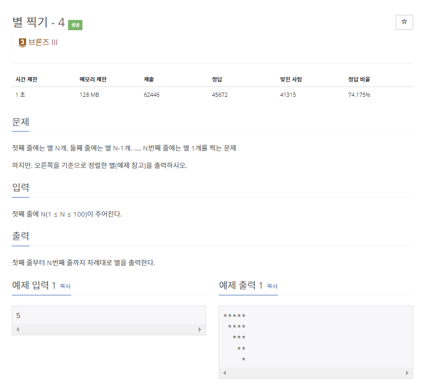 [파이썬/Python] 백준 알고리즘 및 풀이 2441번 별 찍기 - 4